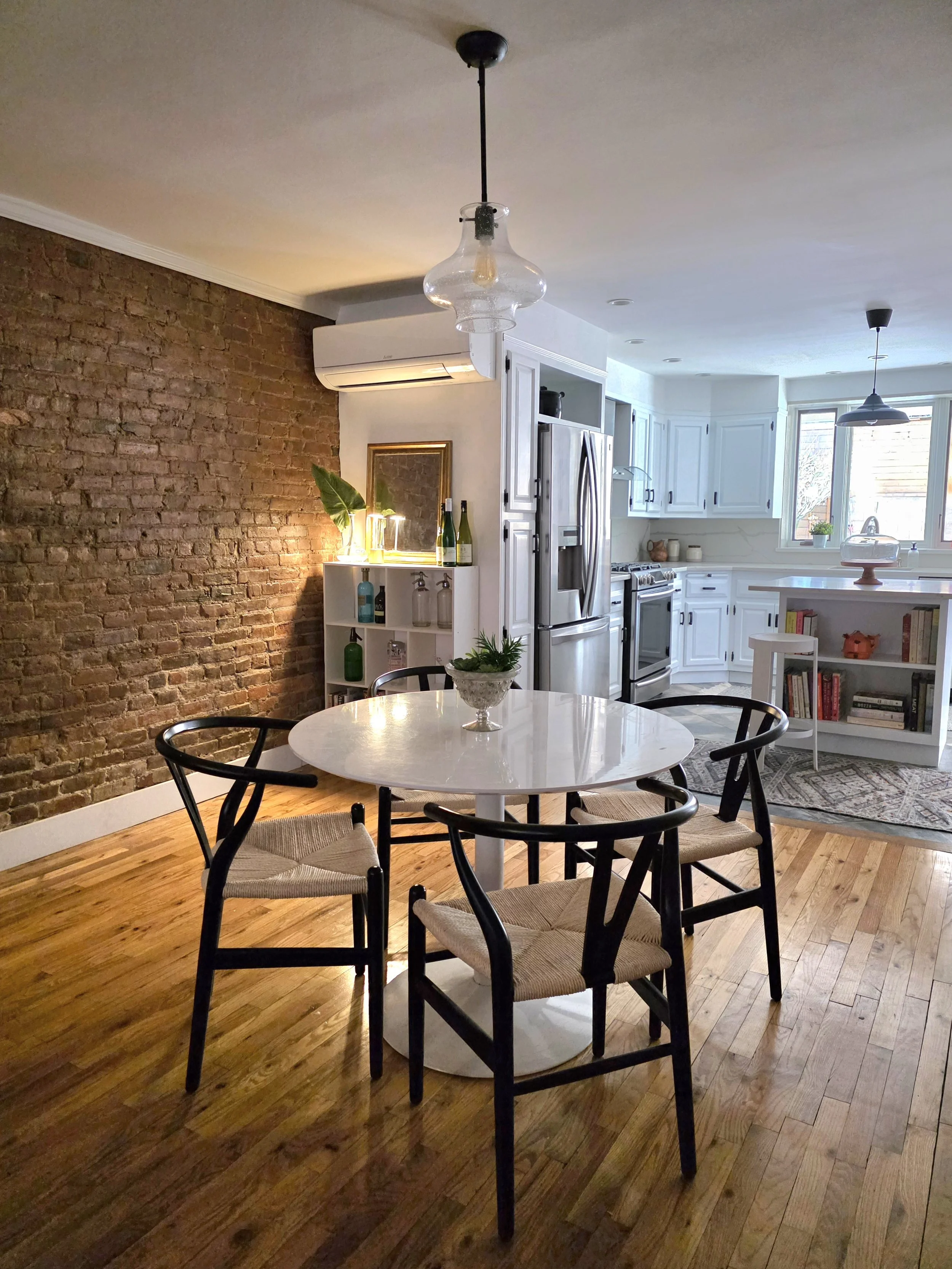 This solid brick home is 20’ wide, with over 3300 square feet, two separate entrances, 4+ bedrooms, 3.5 baths. Use it as a triplex plus two renovated income-producing apartments, or reconfigure to suit your needs. Exquisitely maintained, with updated mechanicals throughout, this is a turn-key property.